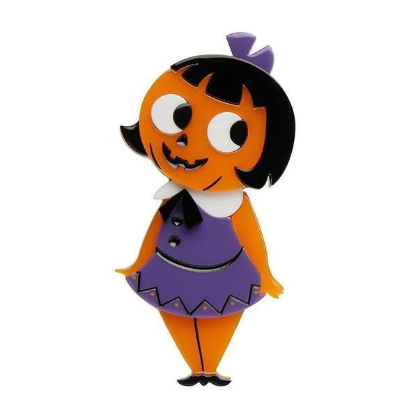 A pretty little pumpkin, with a great big smile. Only the brightest bubble and solid resins, as well as hand-painted details will do for our special gal! She exudes Halloween vibes and brings the party with her, any outfit is sure to shine with a little bit of Eerie Eve!